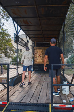 Show off your axe throwing skills or have a few laughs about the lack thereof.